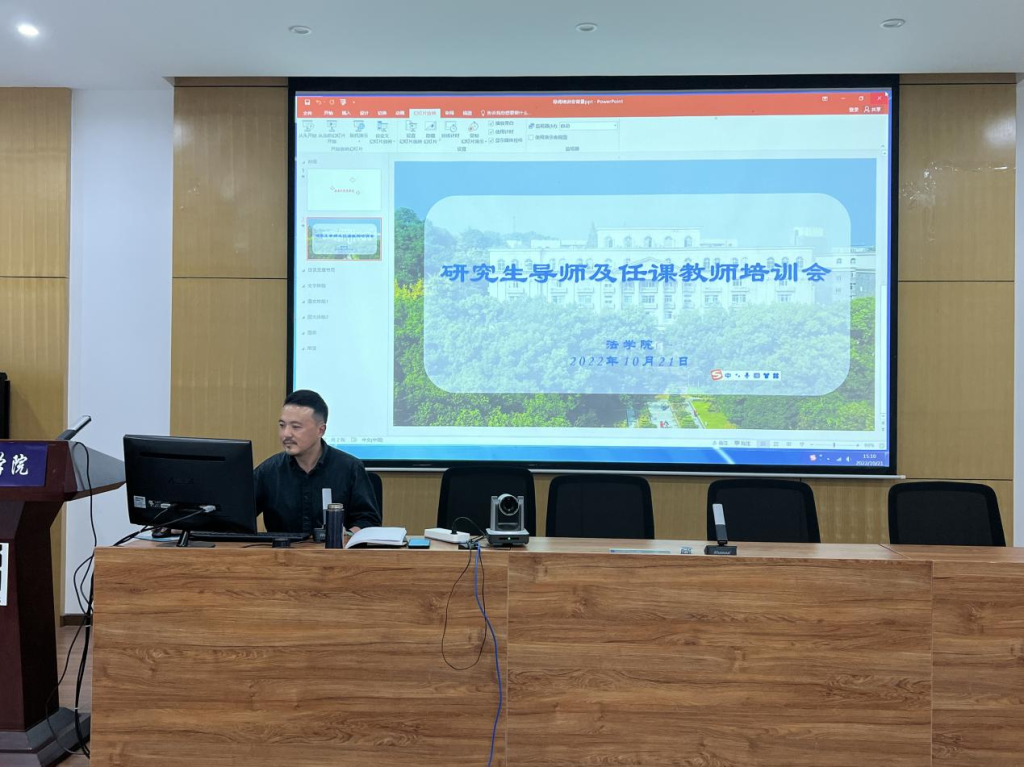 为全面贯彻党的教育方针,加强研究生导师队伍建设,推动研究生教育教学质量发展,10月21日,必赢776net组织开展了研究生导师及任课教师培训。必赢776net导师及任课教师参加了此次会议,会议由副院长邹兵主持。