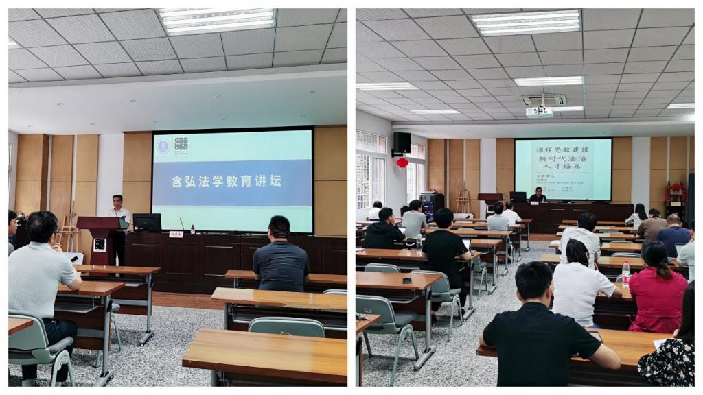 为进一步提高我院法学教育教学水平,更好贯彻落实《高等学校课程思政建设指导纲要》精神,推进学院课程思政建设,2021年6月18日下午,西南政法大学博士生导师、教务处处长张建文教授应邀做客我院“含弘法学教育讲坛”,为学院全体教师做了《课程思政建设:新时代法治人才培养》专题报告。报告会由张步文院长主持。