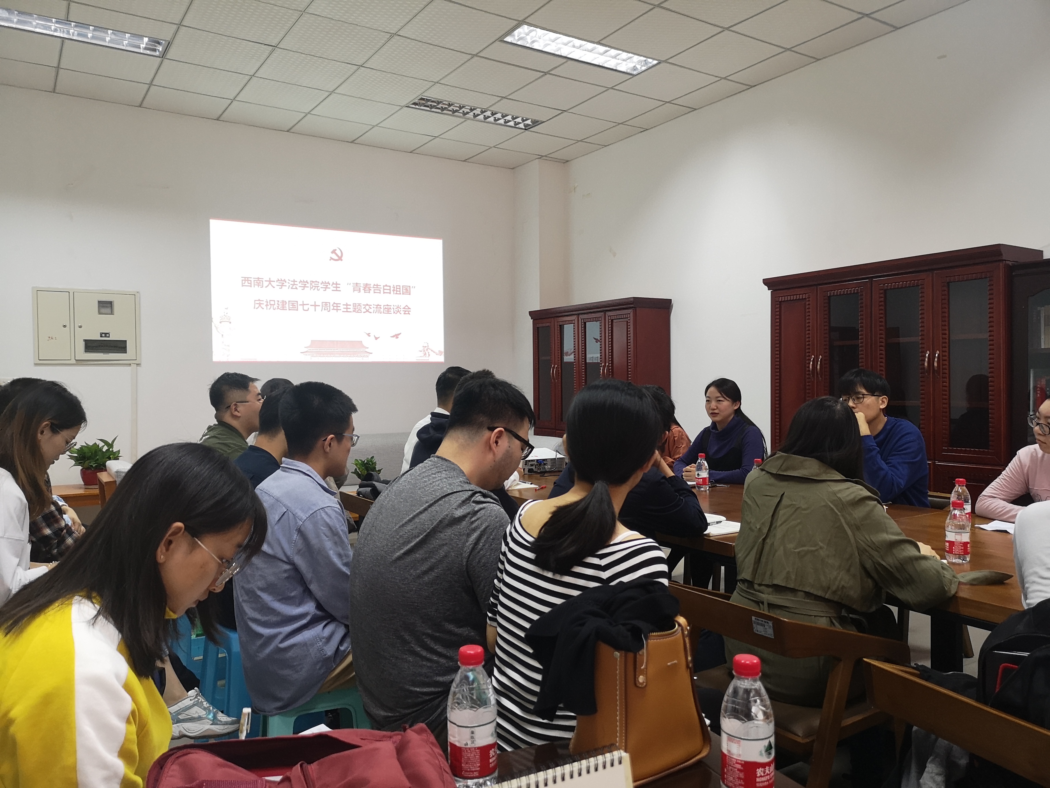 会上,全体成员奏唱国歌,观看回顾2019年建国七十周年大会与1949年开国大典的精彩记录,展开了“回首70年,砥砺前行奋斗路”第一阶段的交流学习。“没有共产党,就没有新中国,祖国的繁荣富强离不开中国共产党的领导。我们学生党员要不忘初心,努力奋斗,勤学专业知识,思想紧跟时代脚步,不断提高个人素质,为国家的法治建设添砖加瓦。”来自本科生一支部的学生党员代表霍皓越同学结合自身发表己见。随后,多名代表积极发言,在表达对祖国的崇高热爱的同时,也对自己提出了高标准、严要求。