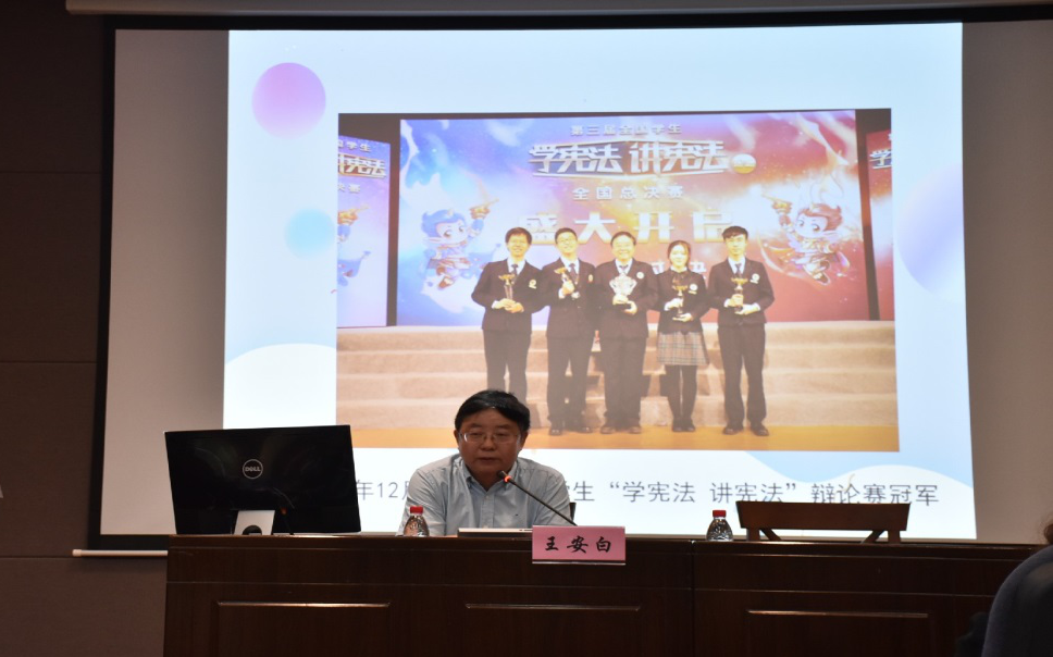 颁奖仪式结束后,南政法大学马克思主义学院教授、校辩论队总教练王安白做客本期“论说会道”大讲堂,为在场师生作了主题为“内容为王,立论为本——西政的辩论理念”的报告。王安白教授首先从其经验入手,为我们讲述了西南政法大学辩论队所经历的比赛,遇到的各种辩论题目以及其中比较精彩的瞬间。然后紧扣讲堂主题,通过之前经历的比赛辩题阐述了如何对辩题进行破题、立论和攻防。他表示,所谓“立论为本”,是指立论是整个辩论的纲,在立论时要考虑题目背景、概念界定、摆明关系、设置底线与范围。所谓“内容为王”,是指在辩论中仅仅有逻辑的辩论是空洞缺乏说服力的,其需要通过各种鲜活的事例讲出持方立场所需的道理。
