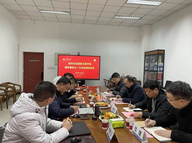 叶金育院长首先对潘院长带队莅临调研指导,表示热烈的欢迎,对国家治理学院长期以来对学院的大力帮助,表示衷心的感谢。随后,叶院长从学科建设、人才培养、社会服务等方面,介绍了学院的积极探索及进步,也指出了学院发展存在的不足与困境。叶院长表示,希望学院认真学习、借鉴国家治理学院的成功经验,进一步推动学院事业全方位发展。