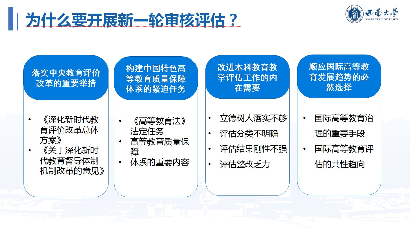 房香荣副院长从新一轮本科教育教学审核评估的意义、目标、内容、程序等方面讲解了审核评估方案,希望学院教师积极主动地参与审核评估的相关准备工作。
