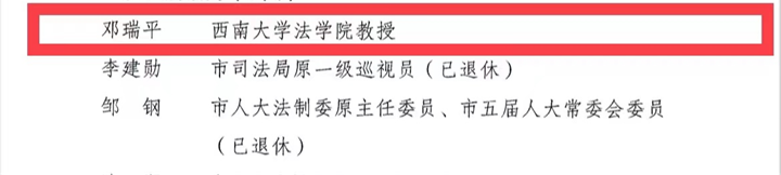 近日,重庆市人大常委会办公厅印发了经市人大常委会主任会议审议通过的重庆市第六届人民代表大会常务委员会立法顾问和立法咨询专家名单。我院邓瑞平教授被聘请为市人大常委会立法顾问,我院赵谦教授被聘请为市人大常委会立法咨询专家。
