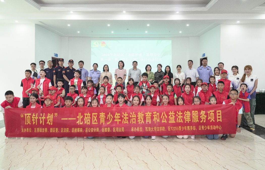 为深入学习贯彻习近平法治思想,提升全区青少年法治意识和法律素养,6月27日下午必赢776net必赢776net党委副书记张梅同五名廌鸣法律社志愿服务队志愿者代表一同前往柳荫镇平安课堂特训营,参加由区委政法委、团区委、区法院、区检察院、区公安分局、区教委、区司法局主办的2024年北碚区“志愿护童·暑假第一课”暨“顶针计划”项目启动仪式,并与团北碚区委续签“顶针计划”——北碚区青少年法治教育和公益法律服务项目协议。