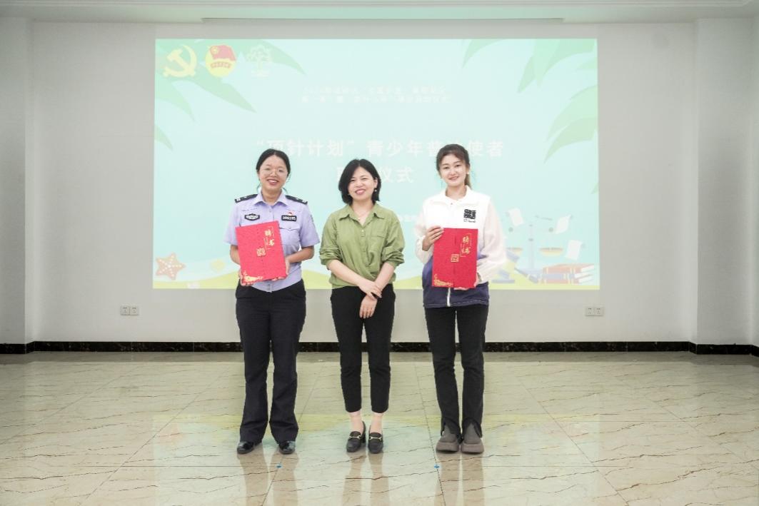 其次,举行“顶针计划”青少年普法使者聘任仪式,必赢776net廌鸣法律社志愿者薛金玲、北碚公安分局蔡家派出所民警何裕接受聘书,担任 “顶针计划”青少年普法使者,她们将用自己的专业知识和热情,为青少年们带去生动有趣的法治课程。