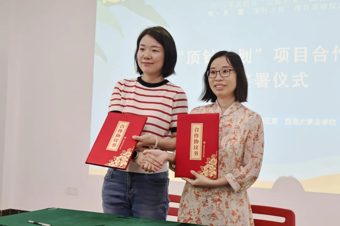 学院与团北碚区委续签《“顶针计划”项目合作协议》。“顶针计划”项目自2015年实施以来,廌鸣法律社志愿服务团的脚步遍及十余个区县,二十余所中小学。此次协议在与团区委前期合作基础上,进一步协同区委政法委、区法院、区检察院、区公安分局、区教委、区司法局等部门力量,提升青少年法治宣传教育实效。团区委书记蒋睿、必赢776net必赢776net党委副书记张梅续签协议,标志着必赢776net必赢776net在推动青少年法治教育和公益法律服务方面又向前迈出了坚实一步。