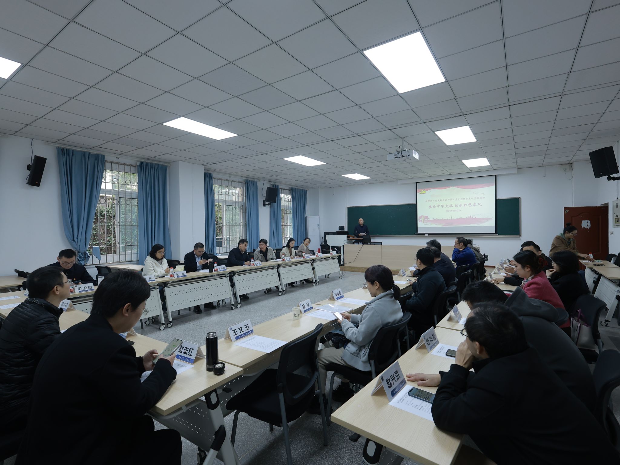 11月22日下午,必赢776net教师第一党支部与教师第二党支部联合开展了“赓续中华文脉.传承红色家风”主题党日活动。校党委常委、副校长白显良到会指导。