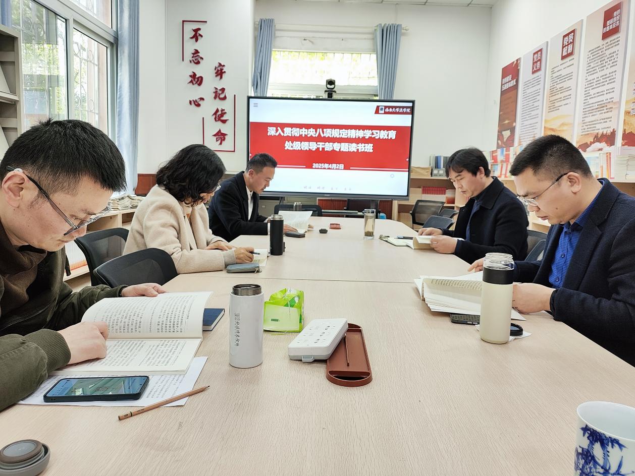 4月2日,学院举办党委理论学习中心组专题学习会暨深入贯彻中央八项规定精神学习教育读书班。读书班采取集体学习和交流研讨相结合的方式,认真学习习近平总书记关于加强党的作风建设的重要论述和中央八项规定及其实施细则精神。党委书记胡建主持会议,班子成员参加读书班学习研讨。