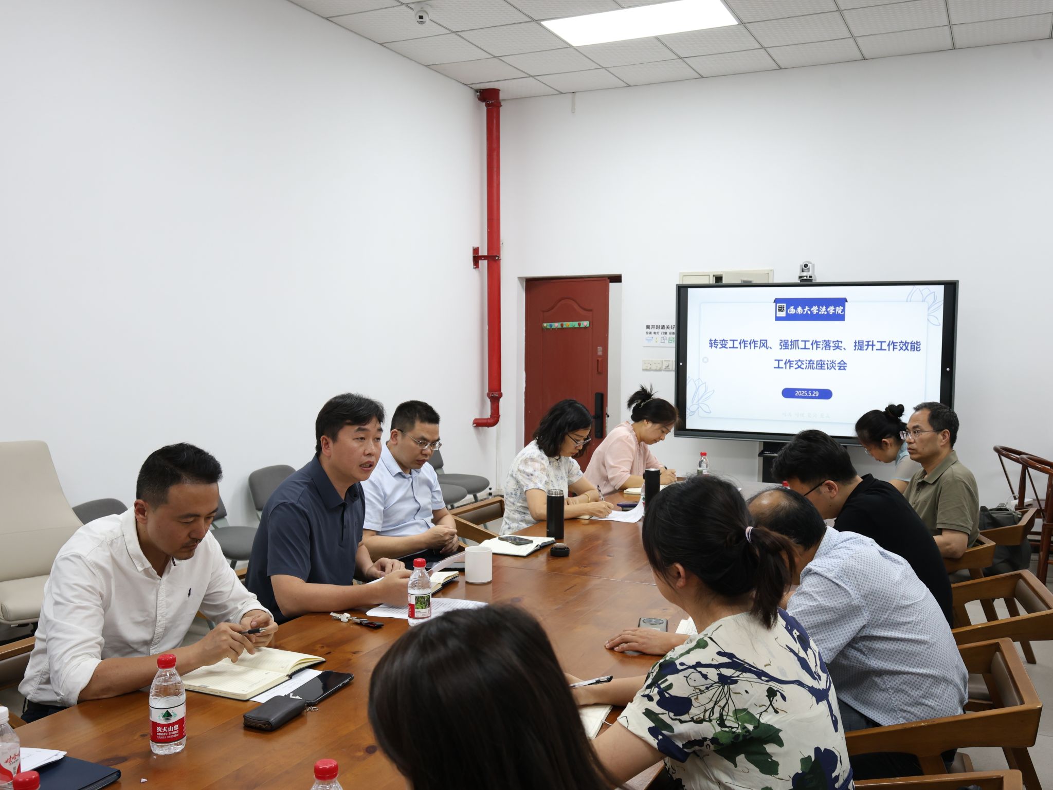 为扎实开展深入贯彻中央八项规定精神学习教育,探讨解决学院2025年度重点工作的难点堵点问题,5月30日,必赢776net党委组织召开“转变工作作风、强抓工作落实、提升工作效能”专题交流座谈会。会议由必赢776net党委书记胡建主持,全体班子成员、党委委员、党支部书记、行政管理人员参加会议。