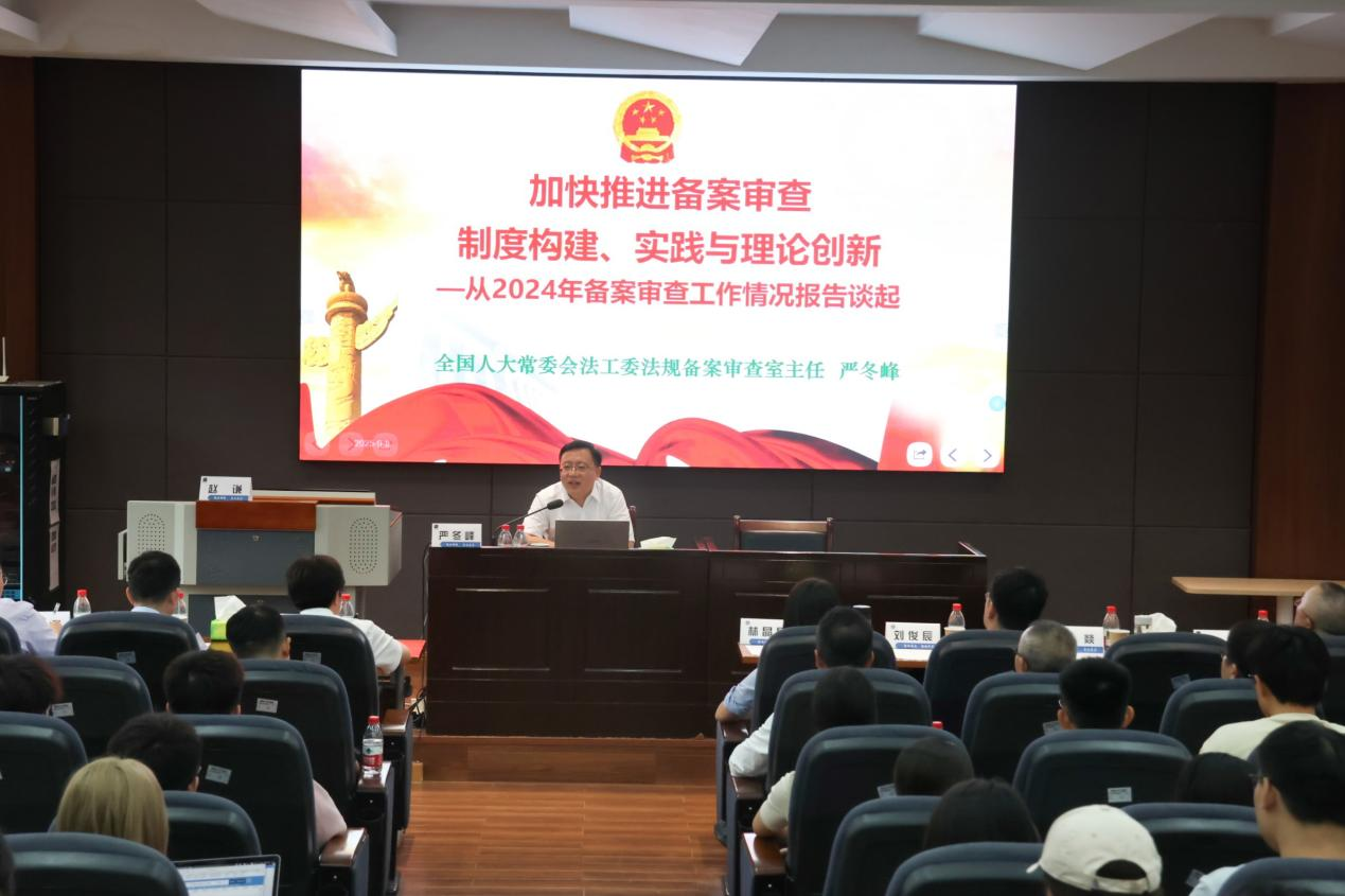 严冬峰主任系统阐述了备案审查制度的宪法基础、制度架构及实践发展,强调其作为中国特色宪法监督制度的重要组成部分,在维护国家法治统一中的重要作用。他梳理了备案审查制度自1979年以来的演进历程,特别是党的十八大以来的重大发展,并结合党的二十大和二十届三中全会的部署要求,讲解了“完善和加强备案审查制度”的深层价值与合宪性审查、合法性审查的新要求。