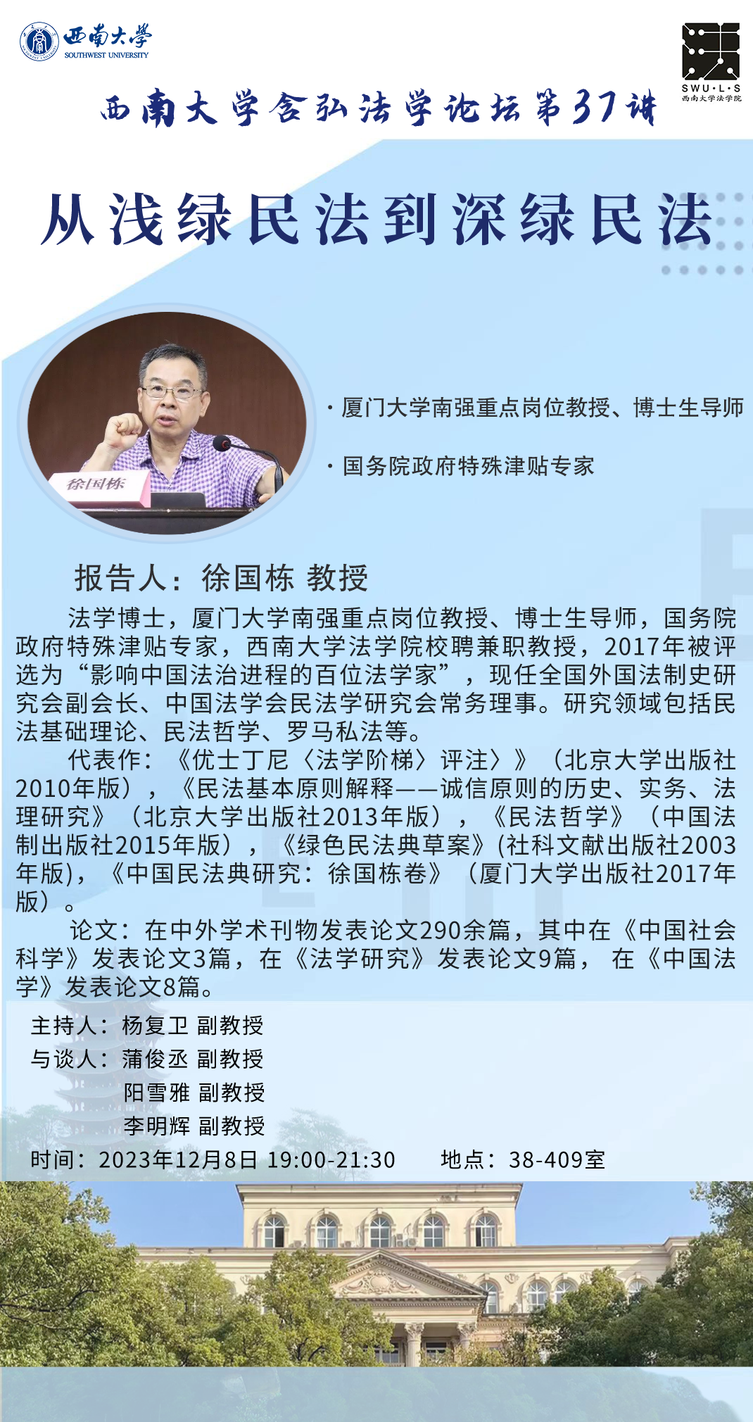 【预告·论坛】徐国栋—《从浅绿民法到深绿民法》
