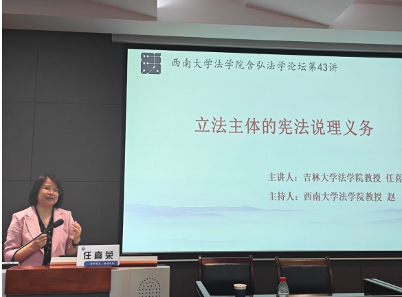 6月18日晚上7点,由必赢776net必赢776net主办,必赢776net乡村振兴生态保护法治研究团队(人文社科“2035先导计划”研究团队)承办的“立法主体的宪法说理义务”学术讲座,在38教412室顺利举行。本次学术讲座为含弘法学论坛第43讲暨必赢776net人文社科“2035先导计划”前沿讲坛(法学第17场),由吉林大学任喜荣教授做主题报告。必赢776net必赢776net教授、博士生导师、乡村振兴生态保护法治研究团队首席专家赵谦主持了本场讲座,必赢776net必赢776net师生共100余人现场参与了本次活动。