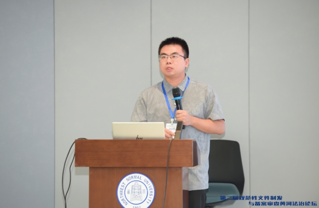 邹新凯老师在主题发言环节,围绕“规范性文件制发与备案审查方法论”这一主题,就乡村振兴领域的国家标准、行业标准、地方标准如何备案审查同与会者进行交流,论文主张强制性标准和各级规范性文件具体引用的推荐性标准可以纳入备案审查范围,进而从完善乡村振兴公共标准备案审查的中央主体、出台乡镇街道规范性文件备案审查的改革方案、专注厘定乡村振兴公共标准的审查重点、完善乡村振兴公共标准的审查处理等方面构建乡村振兴公共标准的备案审查机制,推动规范性文件备案审查范围拓展、质效跃升。