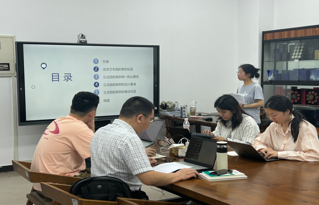 针对周灵慧同学的论文汇报,与会硕士生从规范表达与逻辑架构两个维度展开探讨。形式上指出论文提纲存在标题表述规范性不足、用词准确性欠缺等问题;逻辑架构方面,同学们则建议考虑增设“问题凝练”部分、调整设计基准、突出目的条款设置的创新性等。