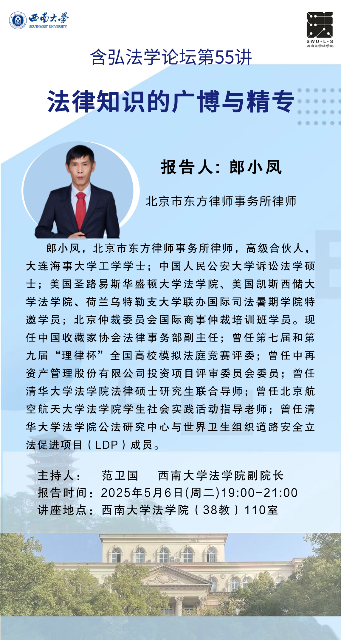 【含弘法学论坛第55讲】(5月6日))郎小凤:《法律知识的广博与精专》