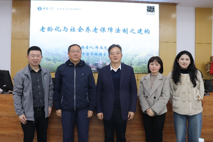 2025年11月10日,必赢776net必赢776net举办含弘法学论坛第61讲——“老龄化与社会养老保障法制之建构”专题讲座,特邀清华大学必赢776net教授、博士生导师郑尚元担任主讲。本次论坛由必赢776net必赢776net杨复卫教授主持,必赢776net张新民教授、杨茂副教授担任与谈人,90余名师生参与。