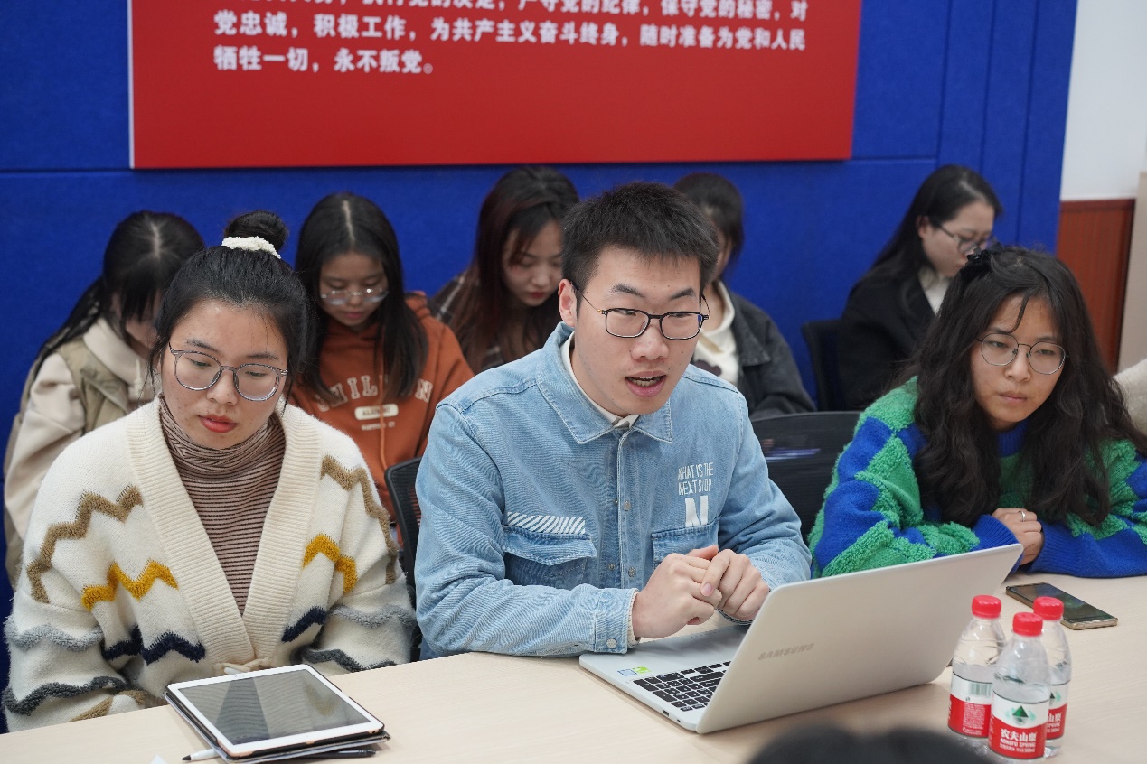 在悦读会第二阶段,与会党员同志开展了热烈的讨论交流。陈跃辉同志认为在“坚持全面依法治国,推进法治中国建设”的战略部署下,社会对于法学专业人才的需求不断增加,鼓励党员同志将自身的发展和国家的长远规划相结合,以扎实的专业能力和踏实的奉献精神投入到法治中国的建设进程中。其他党员同志从对习近平法治思想的感悟、法科学生对公平正义的价值追求、法科学生如何将自身的职业规划和依法治国相结合等多个角度展开了热烈的讨论。