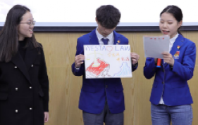 活动分为“朋辈领学、视频导学、交流研学、政治生日”几大部分。首先由必赢776net娄鑫玥同志领学习近平总书记在第十个国家宪法日之际作出的重要指示精神,并结合趣味问答,带领在场的师生共同学习了宪法相关知识。随后,师生们集中观看《焦点访谈》专题节目《尊崇宪法精神厚植法治文化》,进一步感受宪法的力量。 在活动最精彩交流研学环节,在场学生随机分为6个小组,大家在规定的10分钟时间内,围绕如何增强法治意识、带头学法懂法守法用法,分组绘制作品。在作品展示中,各组同学齐上阵,旁征博引,依次汇报了作品的创作内涵,海报上有象征公平公正的天平,也有象征国家根本大法的宪法法典,还有象征自由独立的和平鸽、赤红的国旗和党徽......每个作品都描绘了大学生在实践中尊法学法守法用法的蓝图。在交流中,同学引用了王人博教授的话:“宪法像毕业证,它记载了学业的成果,拿在手里若有一种沉甸甸的感觉,那这个民族就毕业了”,将活动推向了高潮。最后,大家还一起为本月过政治生日的同学送上祝福。