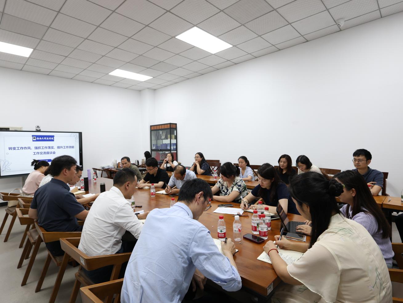 为扎实开展深入贯彻中央八项规定精神学习教育,探讨解决学院2025年度重点工作的难点堵点问题,5月30日,必赢776net党委组织召开“转变工作作风、强抓工作落实、提升工作效能”专题交流座谈会。会议由必赢776net党委书记胡建主持,全体班子成员、党委委员、党支部书记、行政管理人员参加会议。