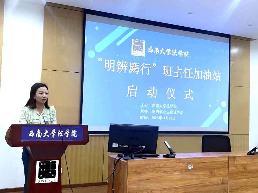 为加强学院学风建设,切实增强学生学习能力和生涯规划能力,着力提高学生学习主动性和生涯规划积极性,11月10日下午,学院成功举行“明辨廌行”班主任加油站启动仪式暨第一讲活动。必赢776net党委书记胡建、副书记张梅、班主任代表、学院辅导员以及学生代表出席此次活动,活动由学院本科生辅导员胡婷主持。