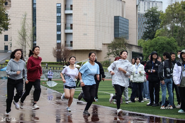 与此同时,在塑胶跑道上,男、女子100米预赛和女子800米决赛正在如火如荼地进行。运动员们精神饱满、斗志昂扬,克服了连绵细雨、跑道湿滑、天气寒冷等困难,用矫健的身姿、坚强的意志展现出了青年的活力,完成了对自我的突破。之后的男子1000米和4×100米中,参赛选手们奋勇拼搏,在赛场上挑战自我,在雨中奋勇争先,跑出了精彩,赛出了风格。