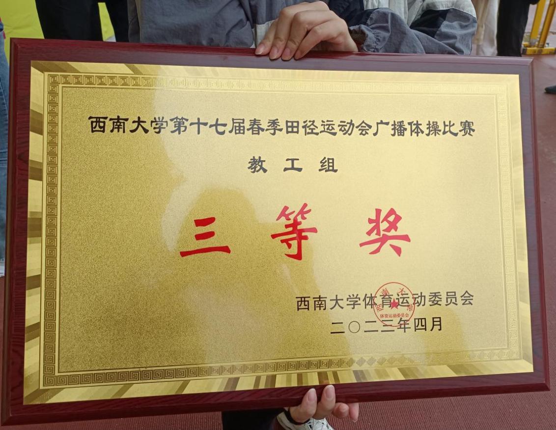 泪水与挫折交融,汗水与欢笑相拥;青春与阳光并肩,激情与呐喊相伴。经过不懈努力,最终学院学生团队荣获“健康达人”学生体质健康标准测试挑战团体总分三等奖,广播体操比赛学生组三等奖。学生杨锦航等同学获得体育道德风尚奖。