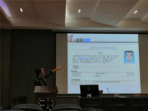 首先,张颖老师提醒同学们在选择好要应聘的公司后,应全方位了解此公司的信息,要明确应聘职位的性质与需要的条件、技能乃至性格。然后,张颖老师对于如何制作一份出彩的简历也进行了细致的讲解,包括了简历的基本样式、简历的内容与结构、简历范例测评以及优秀简历模板推荐等环节。细致入微的讲评深入剖析了简历制作的注意事项,使大家在制作简历时能够做到规范化、标准化,减少了因简历制作失误而错失就业良机的遗憾。张颖老师对学生们的职场面试环节也提出了建议。在面试之前,准备并演练好自我介绍,保持好良好的职场形象。对于面试官提问环节,她强调平时练习的重要性,要多和周边同学相互练习,采取“头脑风暴“的方式,提升自己面对不同情景时的应对,分析问题的能力。