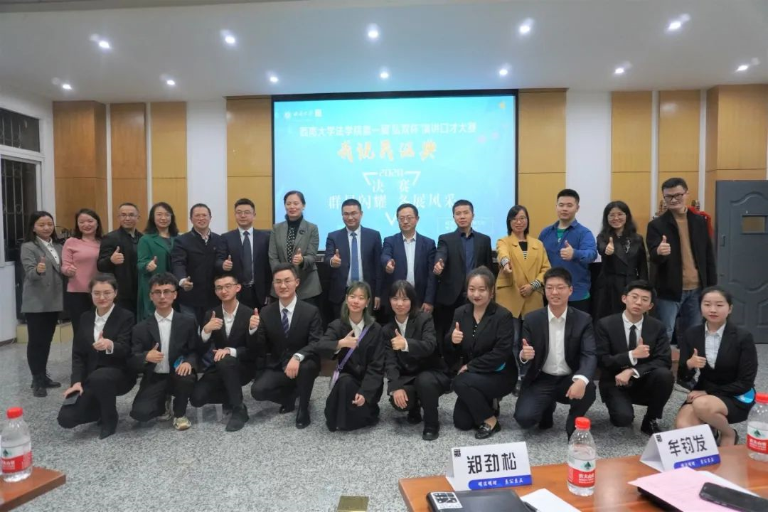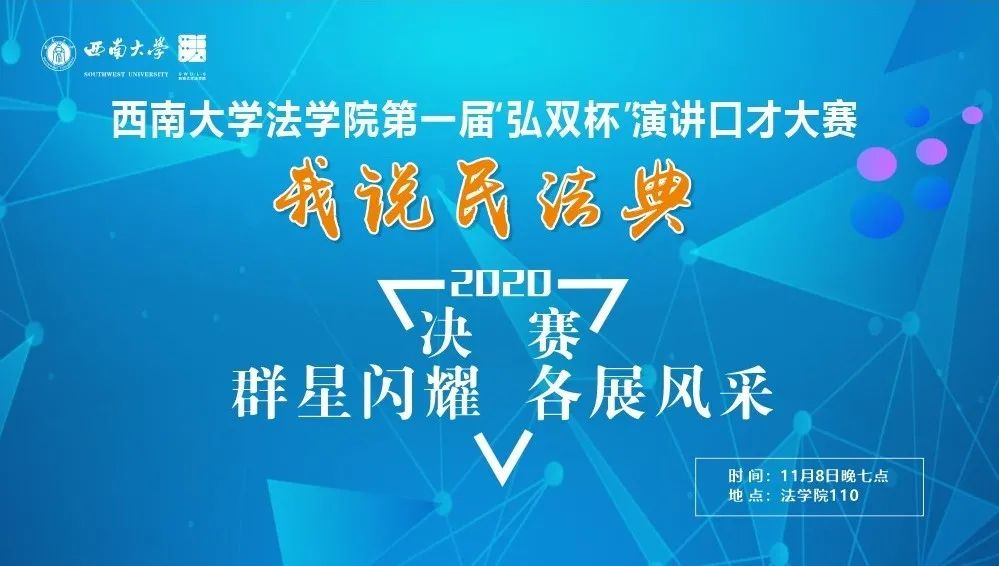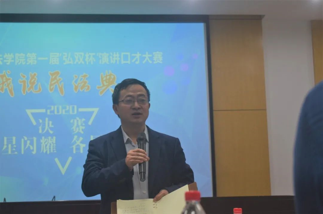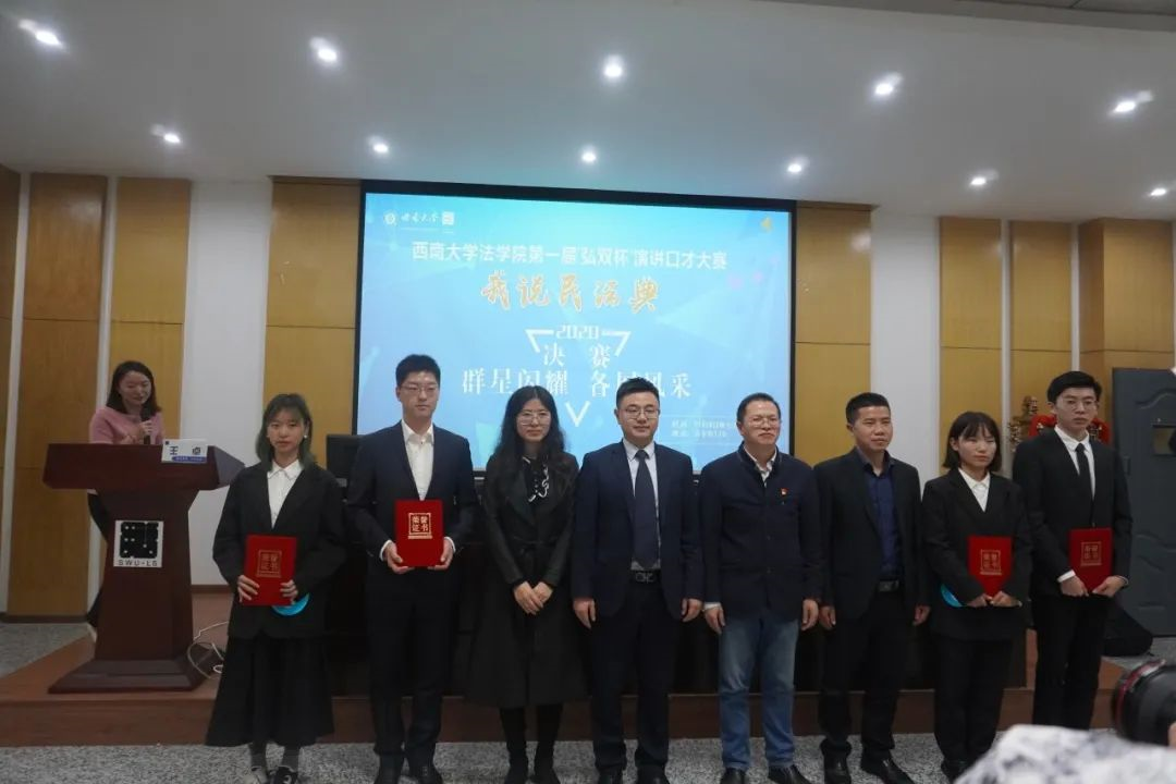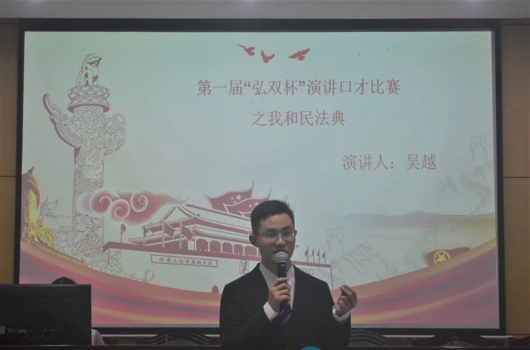 为了提高法学生的语言表达能力,推进《民法典》的普及,提高法学生的口头表达能力和演讲技巧,为法学生的综合素质和能力奠定基础,11月8日晚7点,以“言之有法,典亮学声”为主题的必赢776net必赢776net第一届“弘双杯”演讲口才大赛决赛在必赢776net110室隆重举行。
